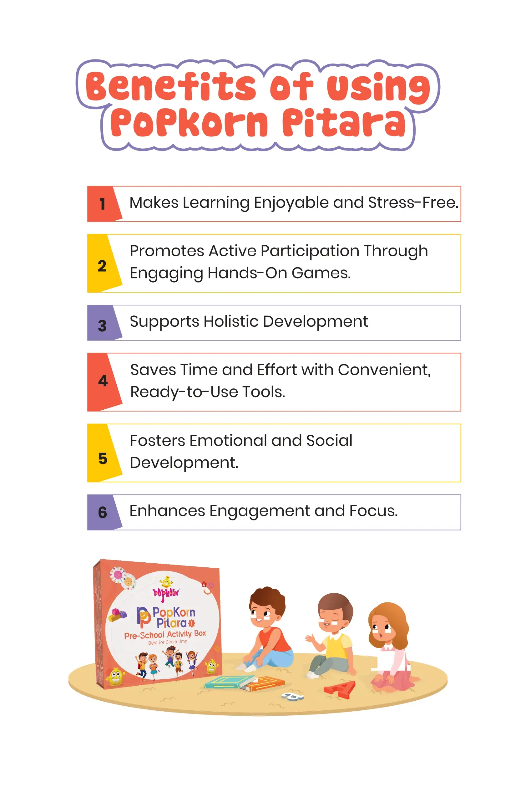 Unlock the magic of learning through play with the PopKorn Pitara Activity Box for Nursery kids (3+ years)! 🌟